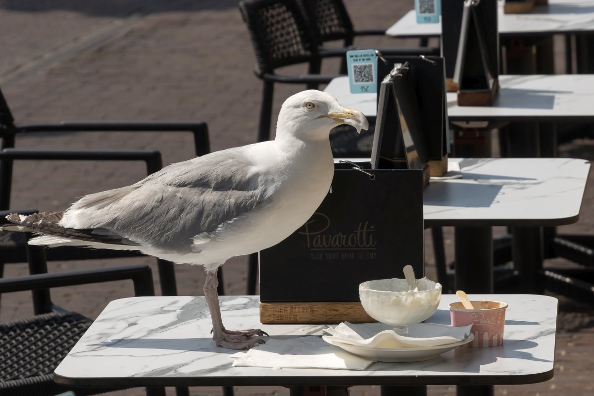 Ziet hoe bontepiet geniet van wat de bodem biedt